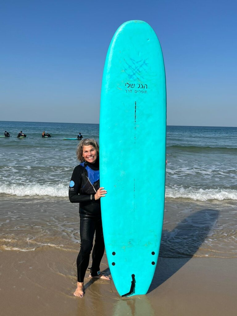Above: Tova surfing in January 2026 at HaGal Sheli , one of CHW’s grant recipients in Israel.